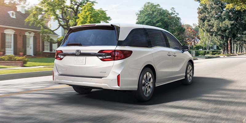 The 2026 Honda Odyssey is available in 4 distinct trims, each designed to offer a unique set of exterior features, ensuring that there's an Odyssey for every preference and lifestyle. The “base” EX-L trim is anything but basic. Chrome accents, body-colored side mirrors, and 18” alloy wheels create a sleek, polished look, while a power tailgate and power sliding doors, LED headlights, fog lights, and taillights, and a 1-touch power moonroof add functionality and sophistication. The Sport-L trim enhances the vehicle's visual appeal with its bold black exterior accents, 19” gloss-black wheels, and red accents. The Touring trim enters the luxury realm, showing off its upgrades on the inside—and they are extensive. At the top of the line, the Elite trim adds additional luxury with premium features like hands-free access to the tailgate ensuring the Odyssey stands out wherever you go.